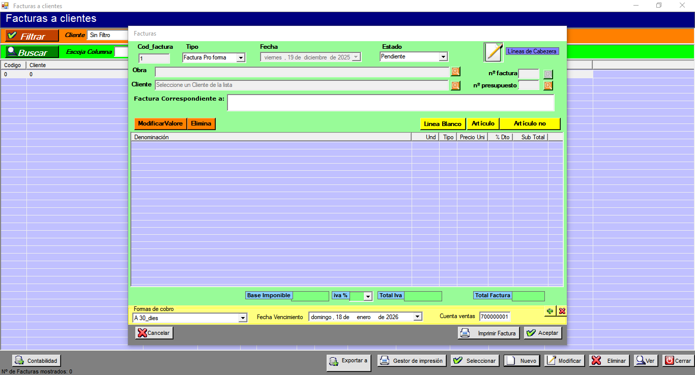 - Facturas: Emisión y gestión de facturas de venta.