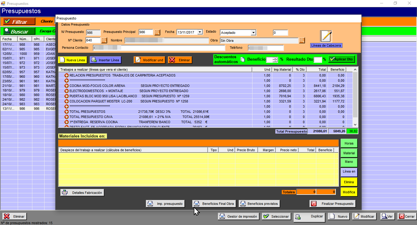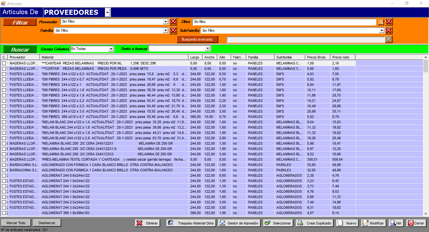 Programa desarrollado exclusivamente desde 0 para Carpinterías (Salmerón)